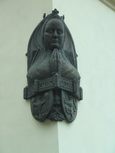 A nearby building has Elizabeth of Bohemia (the sister of Václav III, who was assassinated at Olomouc, ending the male Přemyslid line, and the mother of Charles IV) looking out from a corner, though why precisely, I couldn’t say: