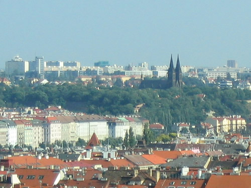 Looking across to Vyšehrad and the basilica of Sts. Peter and Paul: