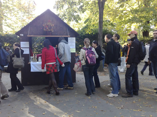 When LB returned, we went out to the wine festival at Havličkovy Sady. However, crowded as it had been at Náměstí Míru the previous day, it was even worse on Saturday. And at all the wine stands, the lines were 20 deep (and moving very slowly), so we didn’t buy anything or stay for long.